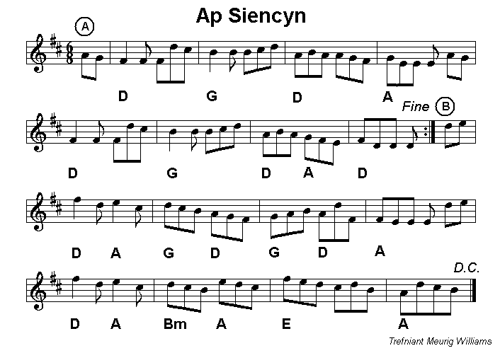 Pendorlan. Ap Siencyn is a well-known Welsh tune which is normally written in G and played at speed. Bob Evans plays it more slowly in D. |