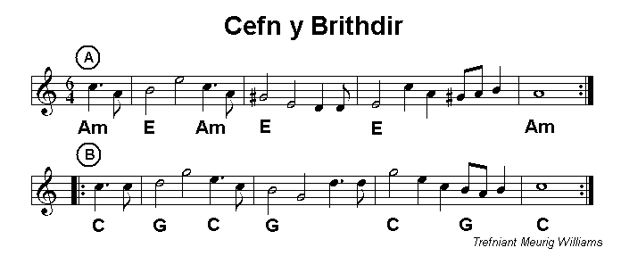 to the Cardiff Session by Gareth Westacott. Mwynen Môn is included in the February 2017 set but is included because it works nicely as the second tune here. The version of Polca Cefn Coed included here is in D and gives a very cheerful conclusion to the set; it is closer to the original Llewelyn Alaw tune than the G version included in the set of polkas from April 2013. Polca Rhydycar is another Llewelyn Alaw tune. |