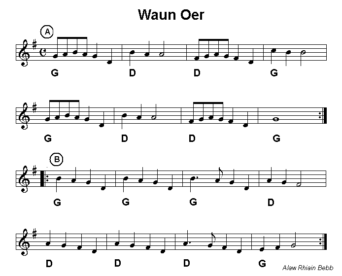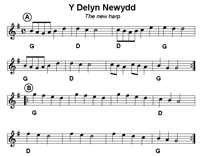 This simple set is based on the often-heard dance tune 'Y Delyn Newydd' (The New Harp) which starts the set. A simple harmony follows as the second tune and 'Waun Oer' (The Cold Meadow), written