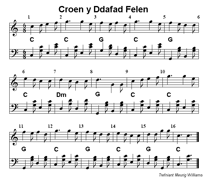 | Chwarae'r alaw'n araf Play the melody slowly |