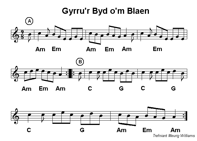 | Chwarae'r alaw'n araf Play the tune slowly |