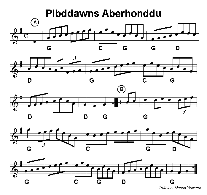 Aberhonddu (Brecon hornpipe) and the Merthyr hornpipe, separated by the Brecon Beacons, with Galwyni Dros y Bar (Gallons over the bar) starting the set. All three come from Tro Llaw, Robin Huw Bowen's splendid selection of hornpipes which is now out of print. Robin collected the tunes from the manuscripts in the National Library of Wales in Aberystwyth. Much of the National Library's collection has been digitized and is available on line. |