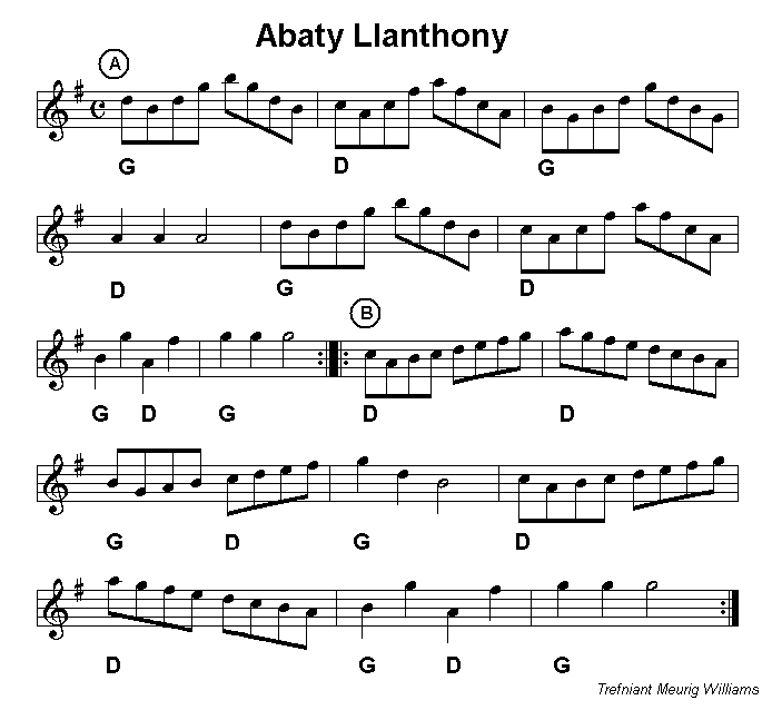 Tavern. Llanthony Abbey is a dance tune named after the famous abbey near Abergavenny. The Wrexham hornpipe is played as a polca as written, rather than as a hornpipe. This set is normally played with pace and spirit, starting fairly gently with Rhydycar and then taking off with Llanthony and Wrexham. |