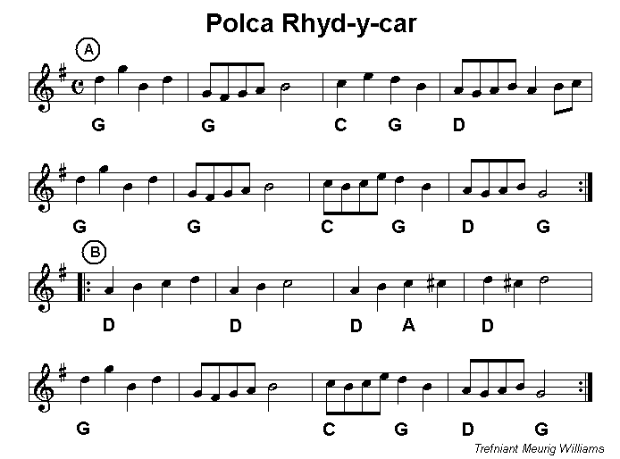 o alawon Llewelyn Alaw yw Polca Rhydycar; bu'n chwarae ei alawon yn y