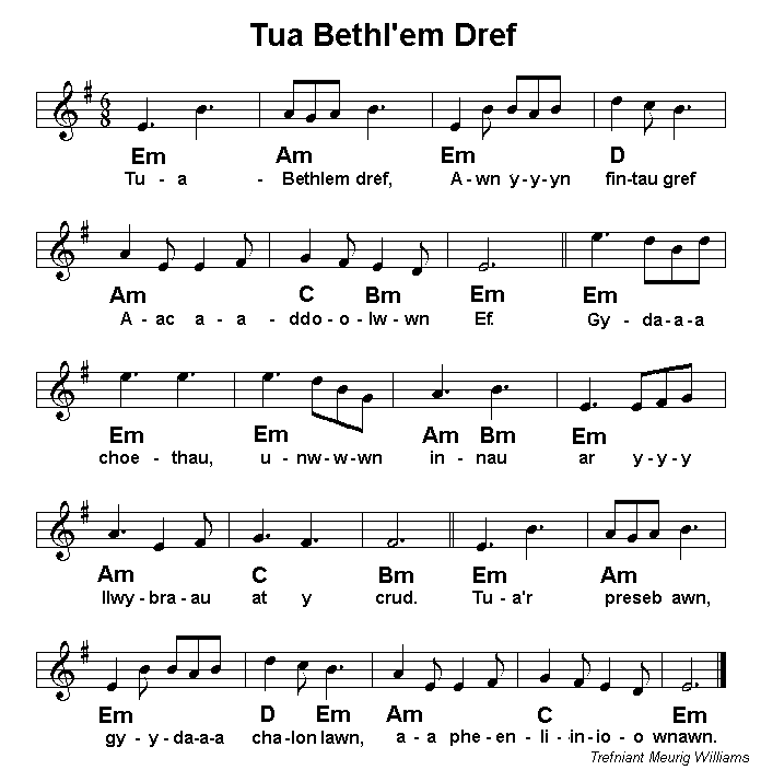 Here's a collection of Christmas tunes and songs. 'Da yw Swllt' (a shilling is good) gives homely advice on looking after your money. The more recent Carol 'Tua Bethlem Dref' (Towards Bethlehem Town) is clearly based on it. 'Tôn Garol' (Carol tune) is played as an instrumental piece in G but C is a better key for singing |